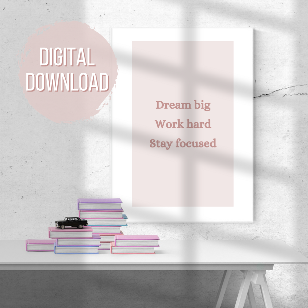 Dream Big, Work Hard, Stay Focused" Printable Quote Wall Art - Inspirational Home Decor