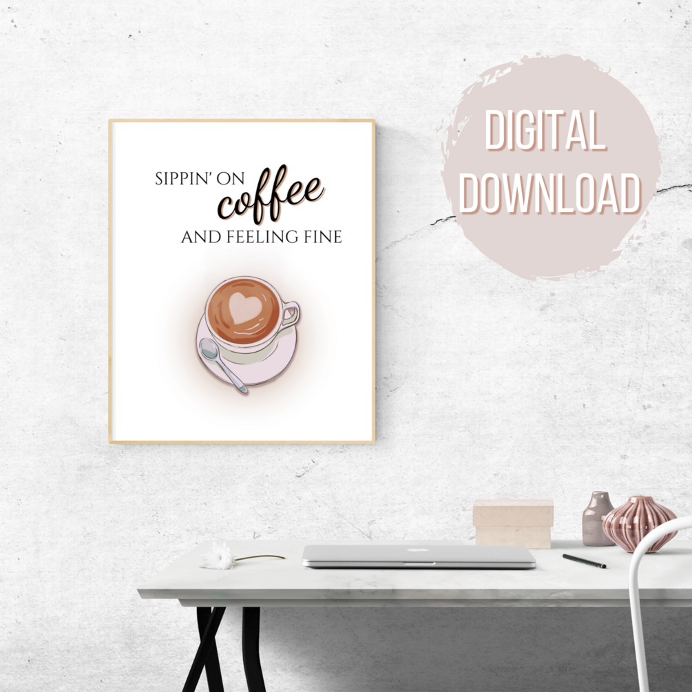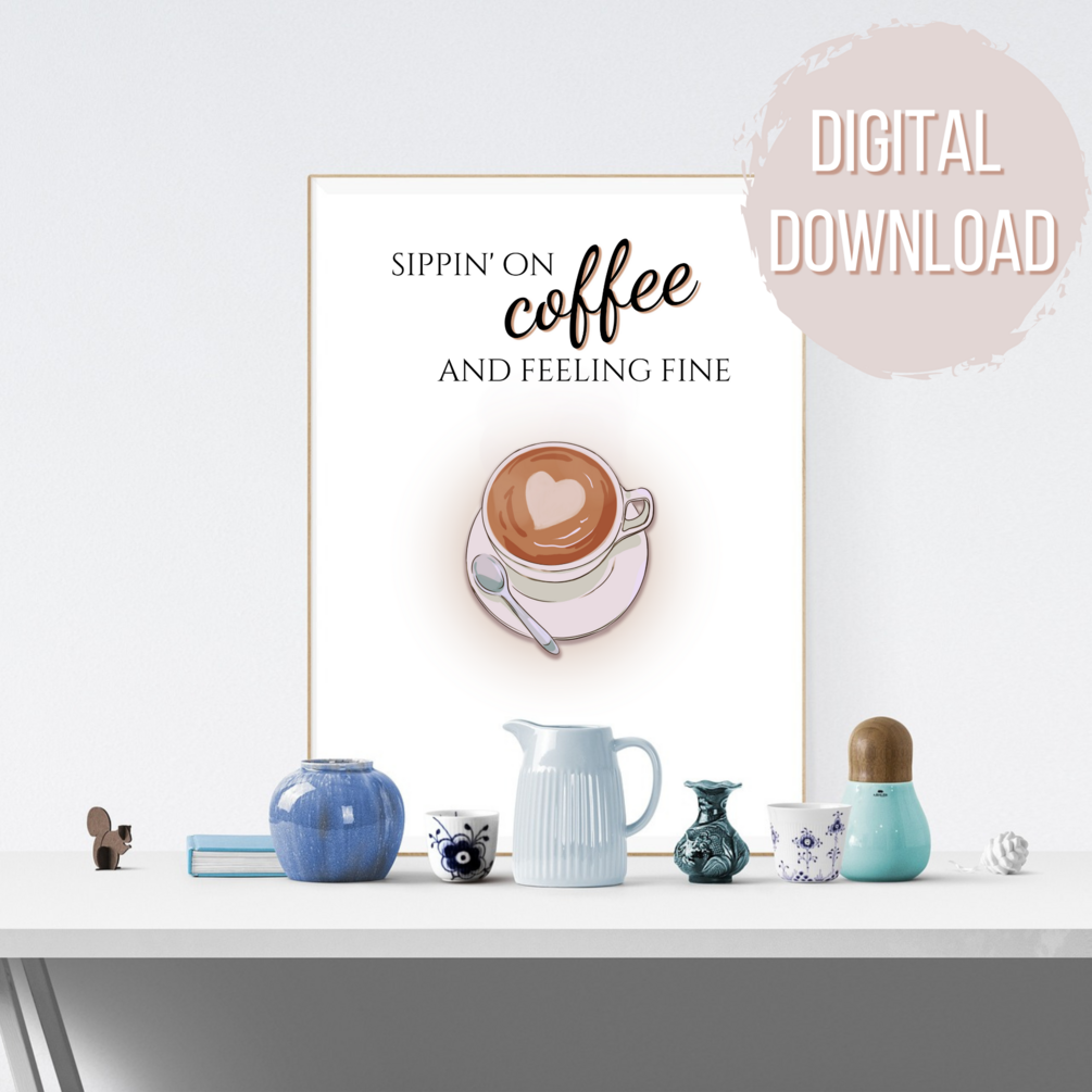 'Sippin' on Coffee and Feeling Fine' - Cozy Coffee Printable Wall ArtInstant Download Café Decor"