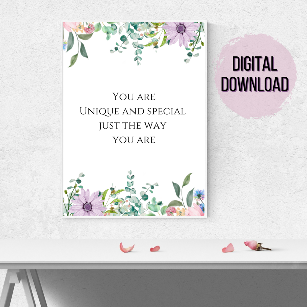 You are unique and special just the way you are | You make the world a better place just by being in it printable, wall art, inspiring quote, motivational poster, digital download.